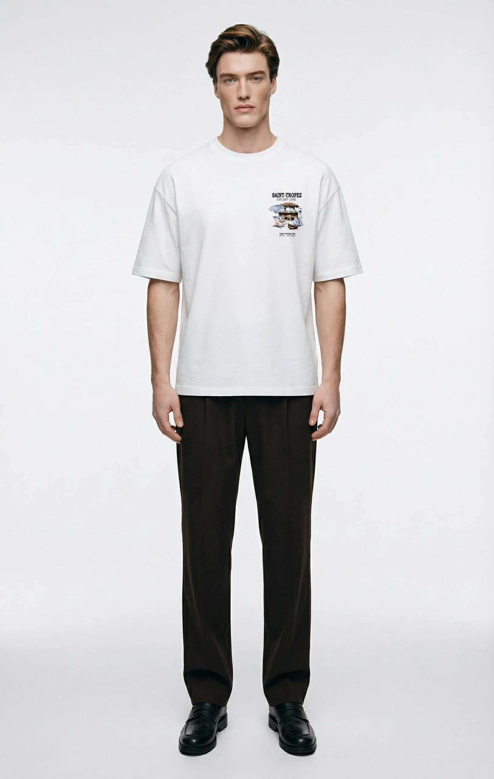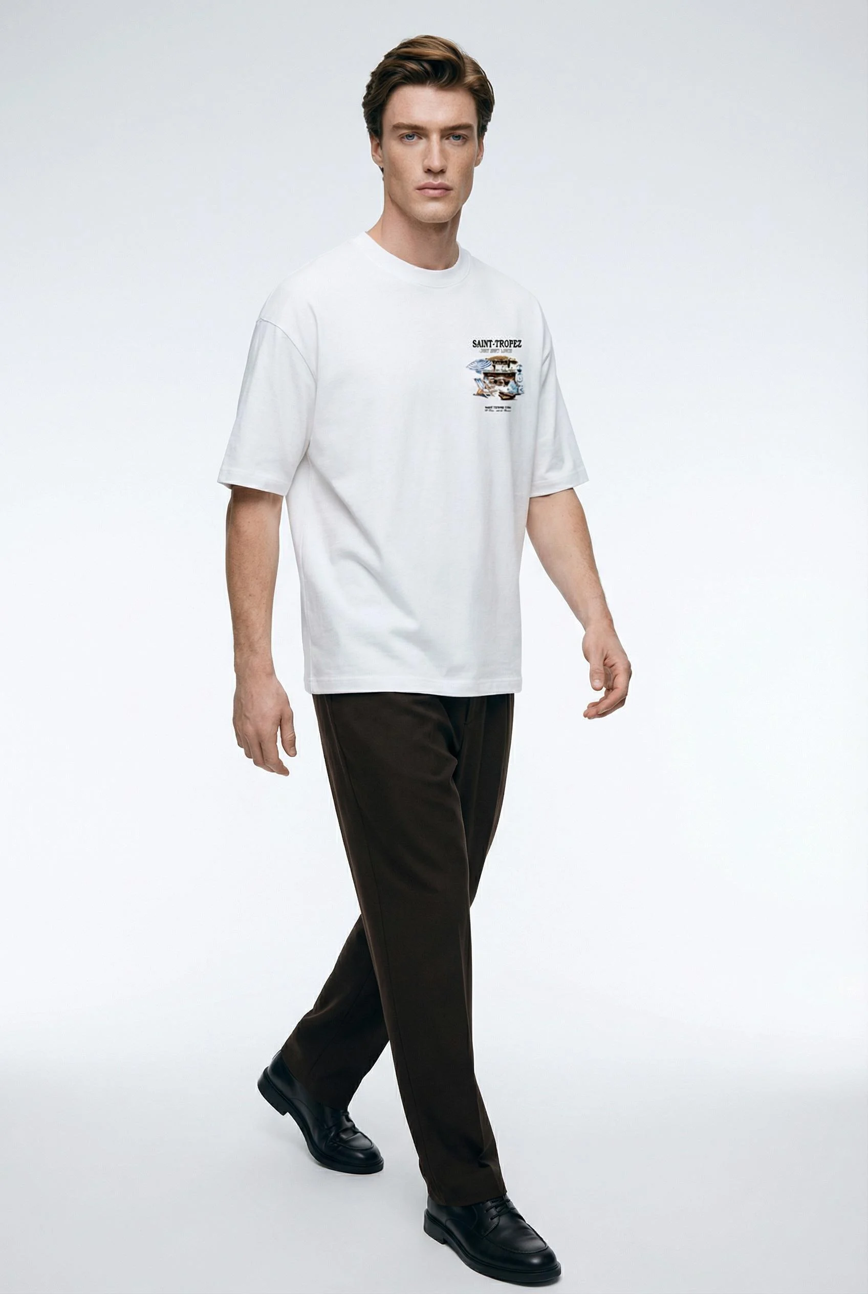 Polo boxy fit 100% algodón con estampado en delantero. Estilo clásico, cómodo y elegante.